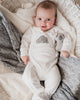 Keep your little one warm and cosy this winter in this long sleeve 100% organic grey marl cotton romper featuring a cute koala applique and a front zip opening for ease of dressing and nappy changes.• Garment photographed in size 00 (3-6mth)• Enclosed feet• Front and back applique graphic• Zip front opening• Safety fold at zip to protect young skin• Grey marl interlock• GOTS - certified 100% organic cotton• Australian owned and designed